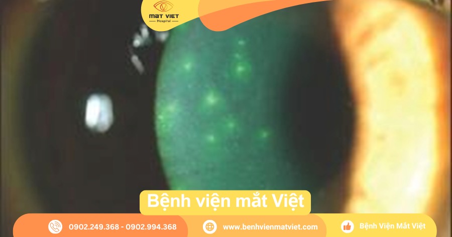 Sang thương trắng xám, chấm hình tròn – oval, nổi gồ trên bề mặt hoặc phẳng, nằm trong biểu mô giác mạc và ít có thâm nhiễm hoặc phù nhu mô bên dưới.